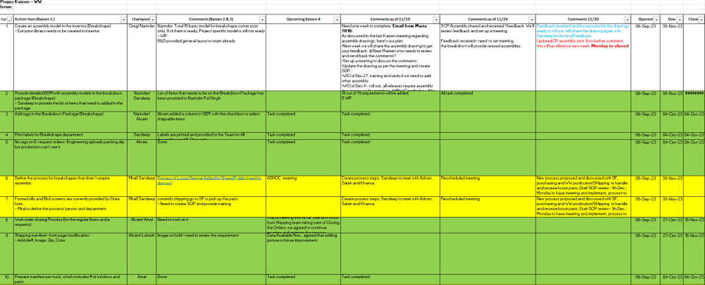This Kaizen event exemplifies the power of continuous improvement in streamlining processes, enhancing communication, and fostering collaboration between departments. The systematic approach to problem definition, root cause analysis, action planning, and ongoing improvement highlights the effectiveness of the Kaizen methodology in addressing complex organizational challenges. The lessons learned from this event can serve as a blueprint for future improvement initiatives across the organization.